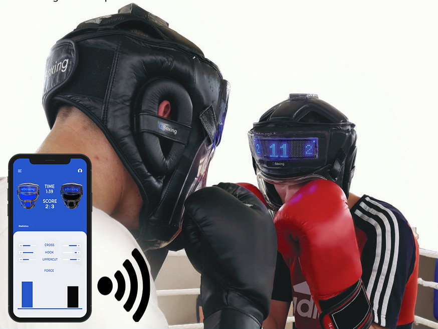 eBoxing is an innovative boxing helmet fitted with an Electronic Force Detection System (EFDS) which enables it to automatically keep score. It is also equipped with a display on the front of the helmet to display relevant information. This innovation will make boxing available to any age group and skill level while making it fun and safe.